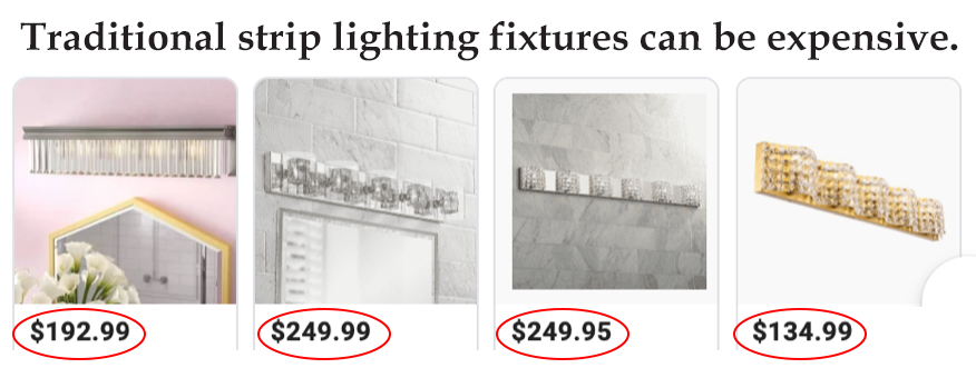 EZ Light Wraps sell for less than half the price to buy a new strip light fixture.